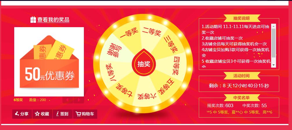 2、收藏店鋪可抽獎(jiǎng)一次;