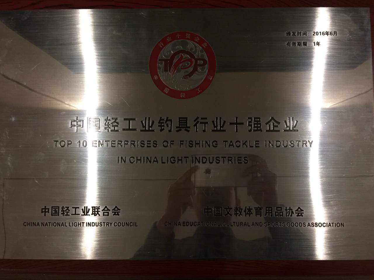 在剛剛結束的“中國文教體育用品協會釣具專委會四屆四次理事(擴大)會議”上,湖北釣魚王漁具有限公司憑借著良好的市場信譽和口碑以及對中國釣具行業的杰出貢獻,榮獲由中國輕工業聯合會和中國文教體育用品協會聯合頒發的“中國輕工業釣具行業十強企業”榮譽證書。