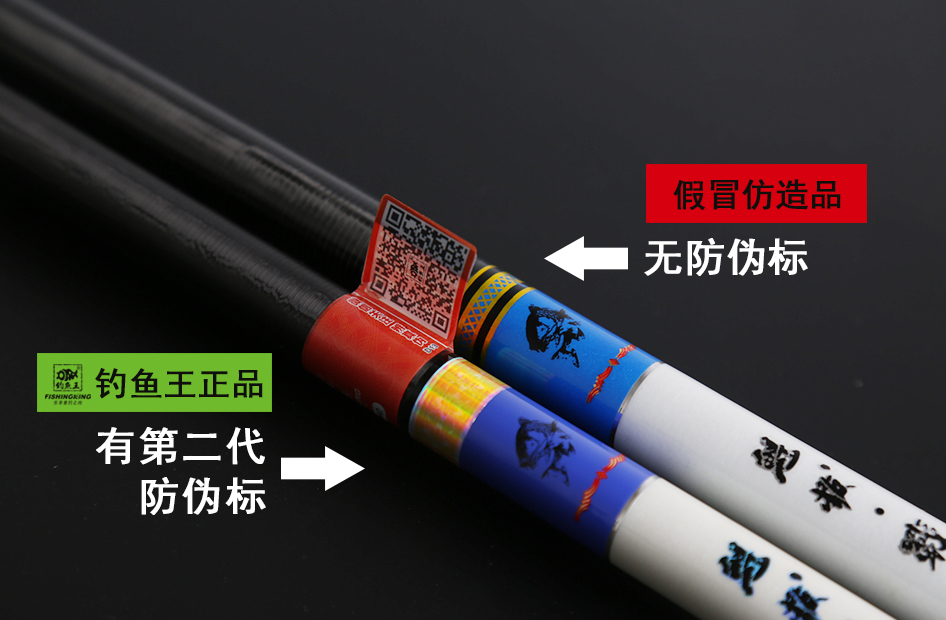 一、購買正品魁拔系列釣竿時請認準正確的釣魚王商標,并認準打假防偽標識。