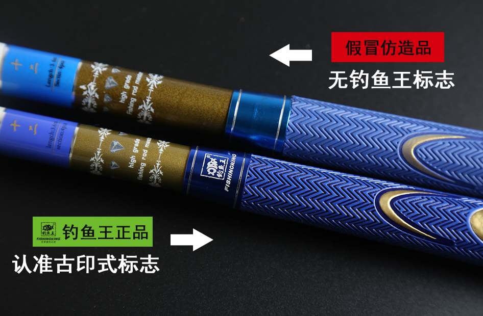 釣魚王出品的魁拔系列釣竿自推出以來,無論是銷量還是效果都受到了廣大釣友的一致好評與稱贊,所以招致一些不法商家模仿我司或打著我司旗號和名義出售假冒偽劣產品。