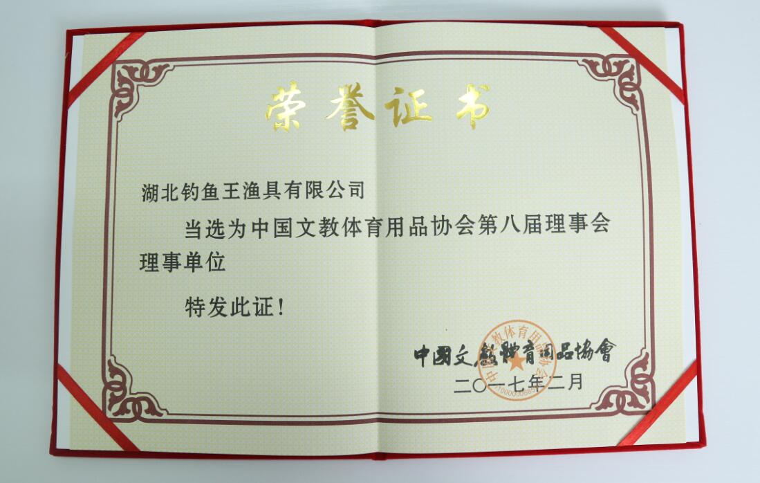 釣魚王榮獲中國文教體育用品協會第八屆理事單位榮譽稱號。