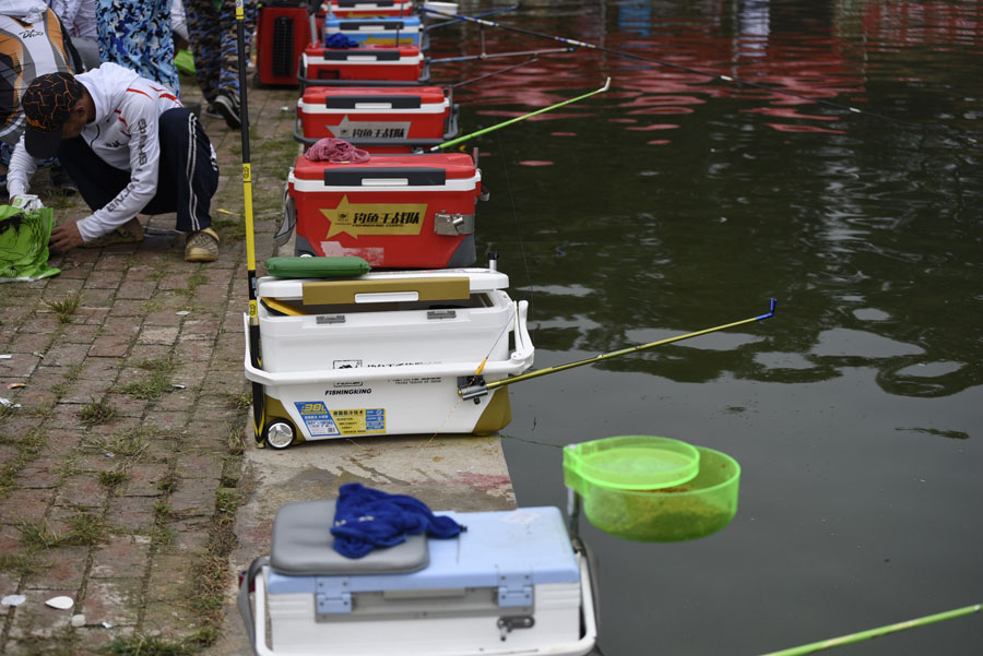 裁判員宣讀比賽規(guī)則后,運(yùn)動(dòng)員們紛紛抽簽入場(chǎng),準(zhǔn)備釣具、開制餌料,一派繁忙景象。
