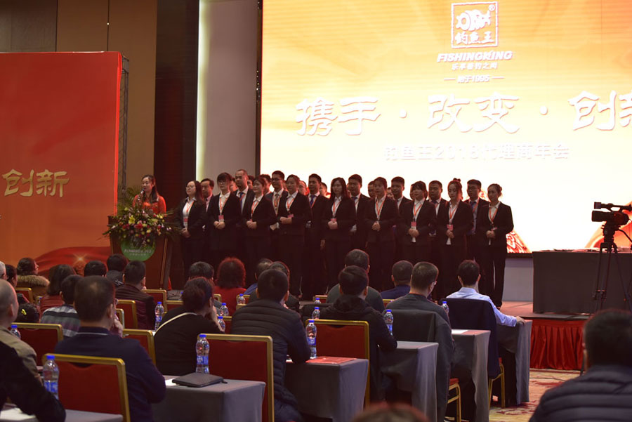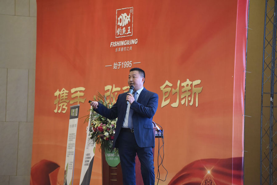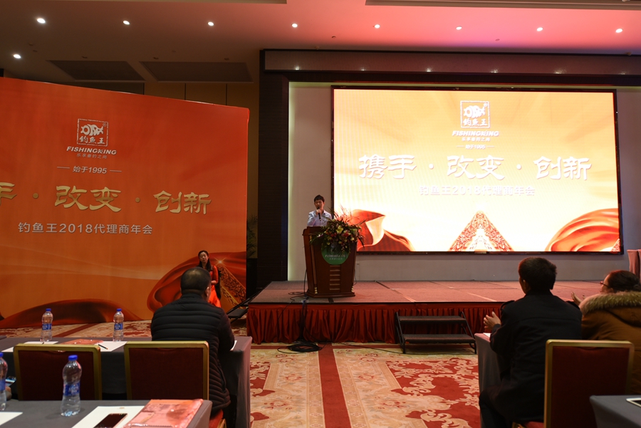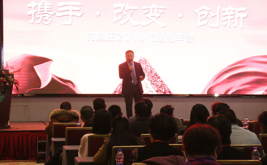 在接下來的講話中,高純先生對2017年釣魚王在應對市場變化中的有效推廣舉措、產品策略等做了簡要的回顧和總結,并對2018年釣魚王的發展戰略方向和經營策略做了精彩的闡述。最后,高純先生就會議主題“攜手、改變、創新”的深層含義做了詳細的說明。高純先生表示,只有公司與客戶、公司與員工、公司與消費者攜手發展,才能合作雙贏;只有傳承改變、推陳出新、廣納人才、創新未來,釣魚王才能煥發新的活力,開啟新的發展篇章,也才能帶領廣大代理商朋友收獲更多的成功和幸福,贏在明天!