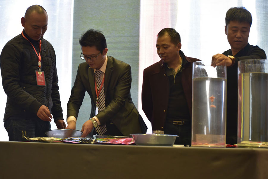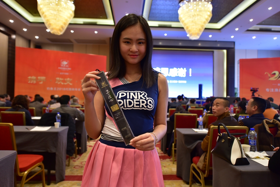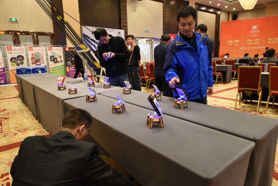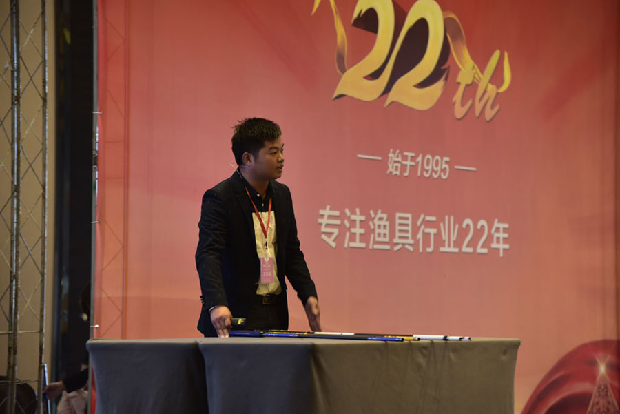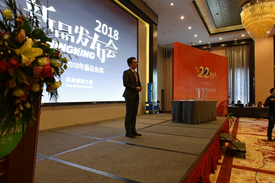 接下來,釣魚王產品研發團隊發布了釣魚王2018年的新品餌料、釣竿、釣線等。釣魚王產品研發中心的工作人員對新品一一進行了詳細的講解演示,并邀請現場嘉賓互動體驗,會議一度達到高潮,釣魚王的新品也給現場的嘉賓留下了深刻的印象。
