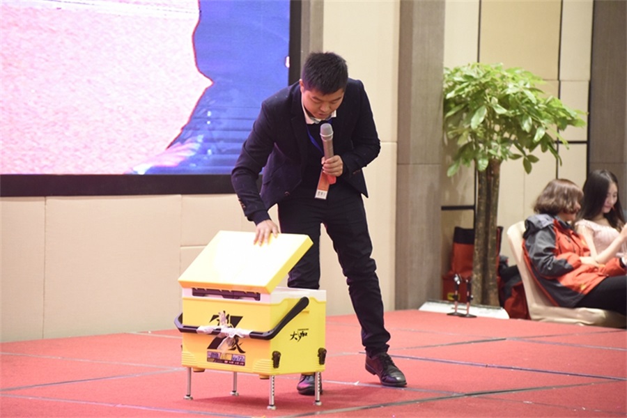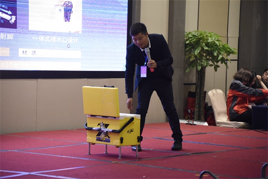 接下來,釣魚王產品中心的研發團隊對2018年的新品進行了詳細的講解與互動演示。本次發布的新品包括48款餌料、8款釣竿、17款浮漂、還有釣箱、魚護、小配件等。