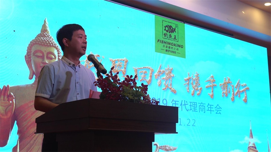 首先,由湖北釣魚王漁具有限公司總經理高純先生致歡迎詞,對到場的各位代理商家人們表示熱烈的歡迎,對關心、支持、幫助釣魚王的各界朋友表示誠摯的感謝。